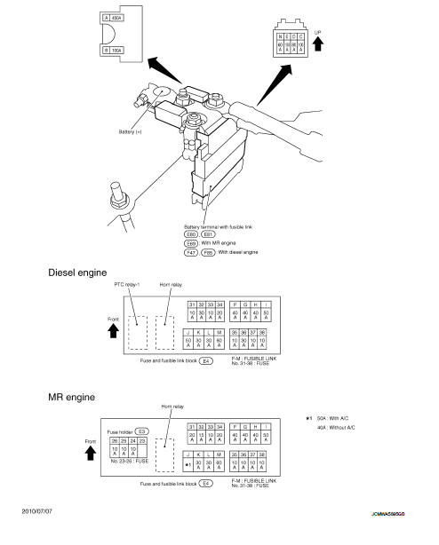 Nissan Juke Service and Repair Manual : Fuse, fusible link and relay box