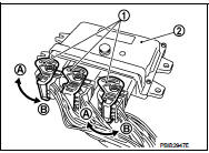 When connecting ECM harness connector (1), fasten (B) it securely with a lever as far as it will go as shown in the figure.
