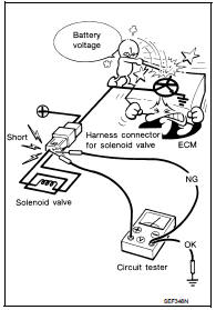 When measuring ECM signals with a circuit tester, never allow the two tester probes to contact.