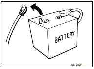Before removing parts, turn ignition switch OFF and then disconnect battery ground cable.