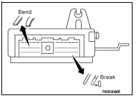 When connecting or disconnecting pin connectors into or from ECM, take care not to damage pin terminals (bend or break). Make sure that there are not any bends or breaks on ECM pin terminal, when connecting pin connectors.