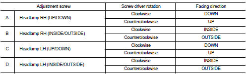 Nissan Juke Service and Repair Manual : Headlamp aiming adjustment