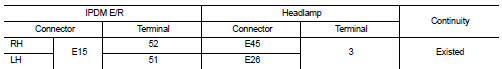 3. Check continuity between IPDM E/R harness connector and headlamp harness connector.