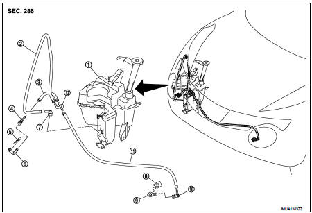Nissan Juke Service and Repair Manual : Headlamp washer nozzle and tube