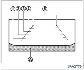 Guiding lines which indicate the vehicle width and distances to objects with reference to the bumper lineA are displayed on the monitor.