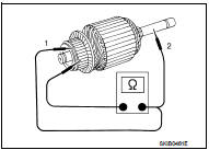 2. Insulation test (between each commutator bar and shaft) • Replace armature assembly if continuity exists.