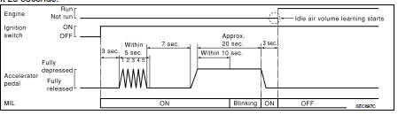 7. Wait 7 seconds, fully depress the accelerator pedal and keep it for approx. 20 seconds until the MIL stops blinking and turned ON.