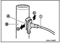 • Install the adjusting holder (A) onto the key interlock rod (B), then install the casing cap (C) onto the CVT shift selector cable bracket (D).