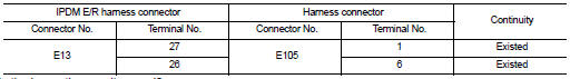 NO >> Repair the main line between the IPDM E/R and the harness connector E105.