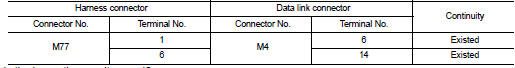 NO >> Repair the main line between the harness connector M77 and the data link connector.