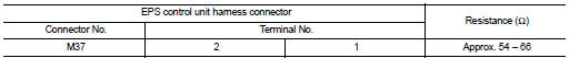 2. Check the resistance between the EPS control unit harness connector terminals.