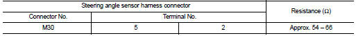 2. Check the resistance between the steering angle sensor harness connector terminals.