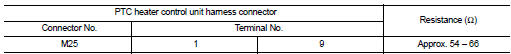 2. Check the resistance between the PTC heater control unit harness connector terminals.