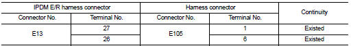 2. Check the continuity between the IPDM E/R harness connector and the harness
