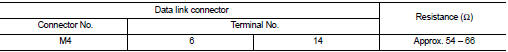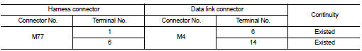 NO >> Repair the main line between the harness connector M77 and the data link connector.