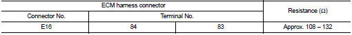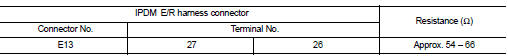 2. Check the resistance between the IPDM E/R harness connector terminals.