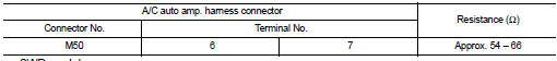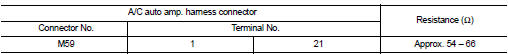 2. Check the resistance between the A/C auto amp. harness connector terminals