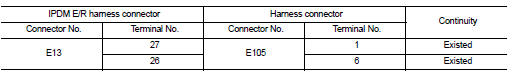 2. Check the continuity between the IPDM E/R harness connector and the harness