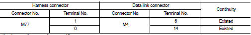 NO >> Repair the main line between the harness connector M77 and the data link connector.