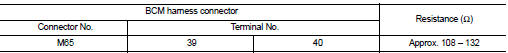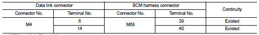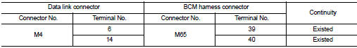4. Check the continuity between the data link connector and the BCM harness connector.
