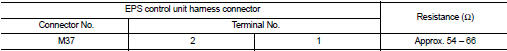 2. Check the resistance between the EPS control unit harness connector terminals.