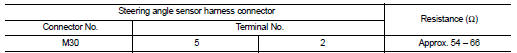 2. Check the resistance between the steering angle sensor harness connector terminals.