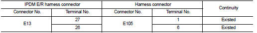 NO >> Repair the main line between the IPDM E/R and the harness connector E105.