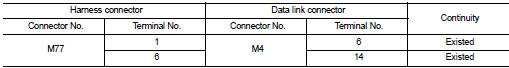 NO >> Repair the main line between the harness connector M77 and the data link connector.