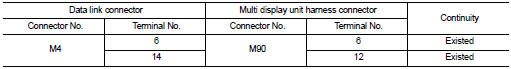 NO >> Repair the main line between the data link connector and the multi display unit.