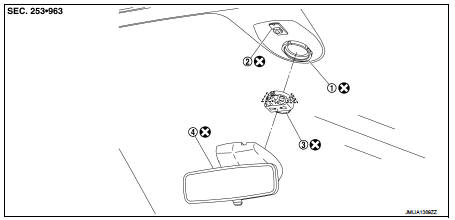 1. Remove inside mirror assembly. Refer to MIR-41, "Removal and Installation".