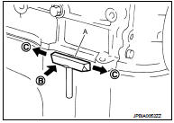 • After removing mounting nuts and bolts, separate the mating surface using the seal cutter [SST: KV10111100] (A) and remove old liquid gasket sealing.