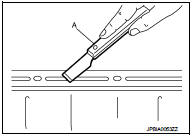 1. Using a scraper (A), remove old liquid gasket adhering to the liquid gasket application surface and the mating surface.