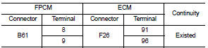 2. Check the continuity between FPCM harness connector and ECM harness connector.