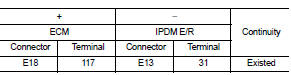 3. Check the continuity between ECM harness connector and IPDM E/R harness connector.