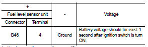5. Check the voltage between fuel level sensor unit harness connector and ground.