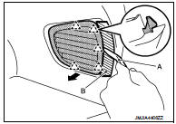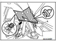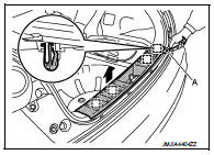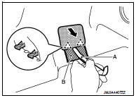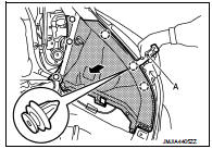 Disengage luggage side lower finisher grille fixing pawls with a remover tool (A), and then remove luggage side lower finisher grille.