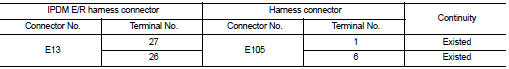 2. Check the continuity between the IPDM E/R harness connector and the harness