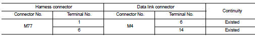 NO >> Repair the main line between the harness connector M77 and the data link connector.