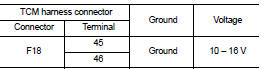 Check the voltage between the TCM harness connector terminals and ground.