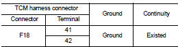 Check the continuity between TCM harness connector terminals and ground.