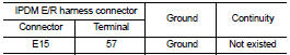 Check continuity between IPDM E/R harness connector terminal and ground.