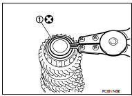 11. Install mainshaft rear bearing inner race (1), using the drift (A) [SST: ST30901000].
