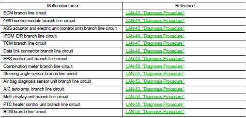 Nissan Juke Service and Repair Manual : Malfunction area chart