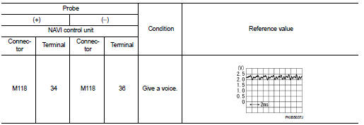 Power is supplied from NAVI control unit to microphone. The microphone transmits the sound voice to the NAVI control unit.