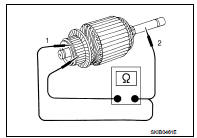 2. Insulation test (between each commutator bar and shaft) Replace armature assembly if continuity exists.