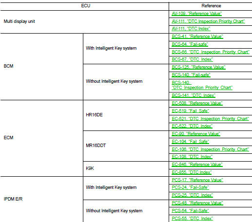 Nissan Juke Service and Repair Manual : Multi display unit, BCM, ECM, IPDM E/R