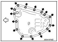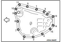 • When the oil pan is installed, tighten bolts in the order shown in the figure after temporarily tightening the oil pan mounting bolt.