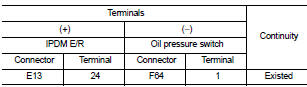 3. Check continuity between IPDM E/R harness connector and oil pressure switch harness connector.