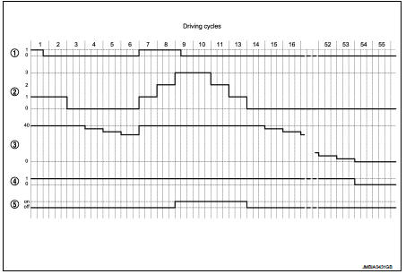 1. Present malfunction 2. Driving cycle counter 3. Warm up cycle counter 4. Memorised malfunction 5. MI state
