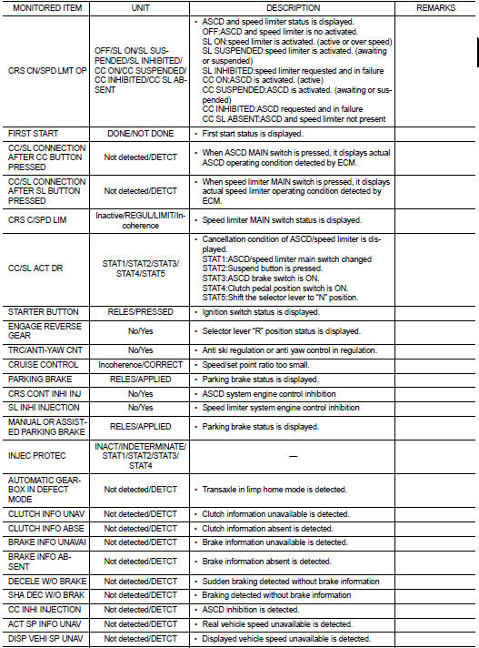 Autmatic speed control device (ASCD) : Switch Name and Function